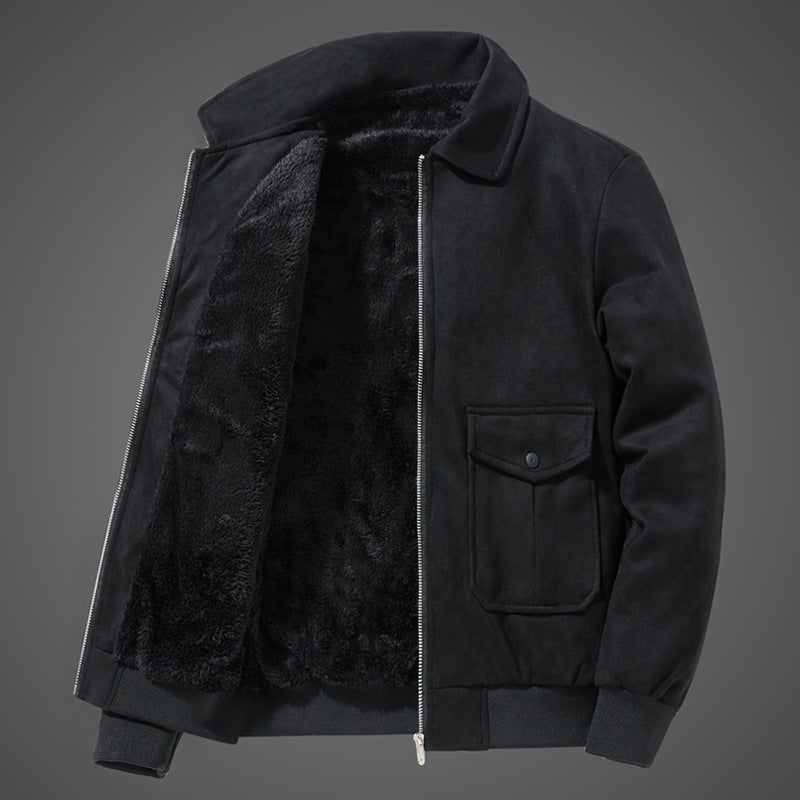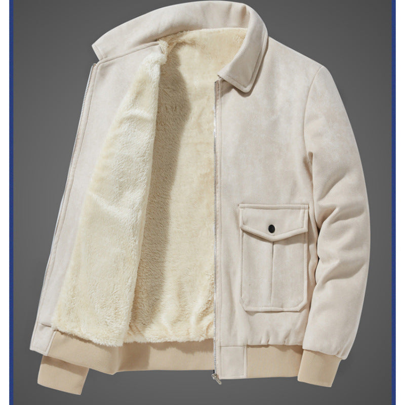 Chaqueta cálida informal con solapa acolchada y forro polar para otoño e invierno para hombre