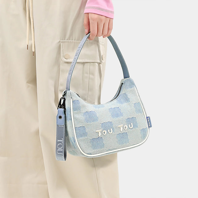 Bolso de hombro versátil de mezclilla de imitación con estampado de galletas - 22 x 13,5 x 8,5 cm / Azul está agotado y se enviará tan pronto como vuelva a estar disponible.