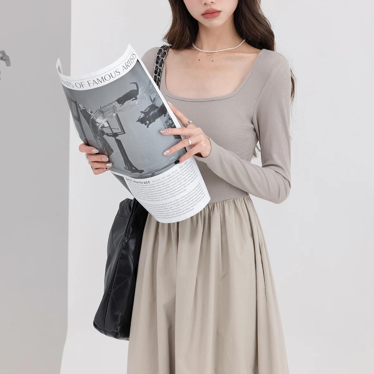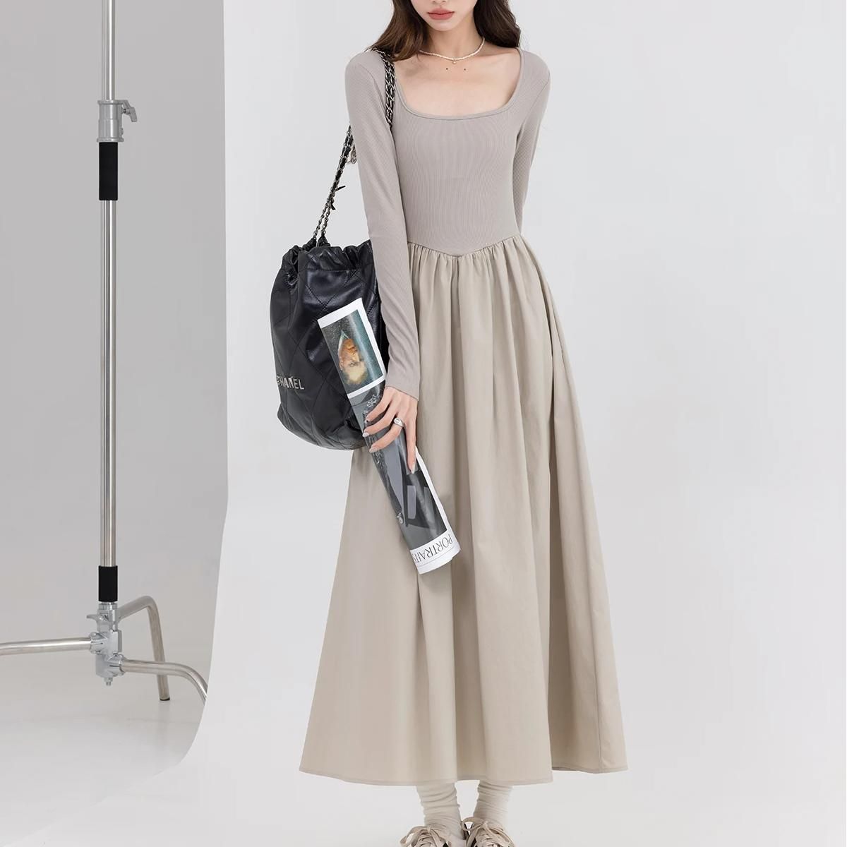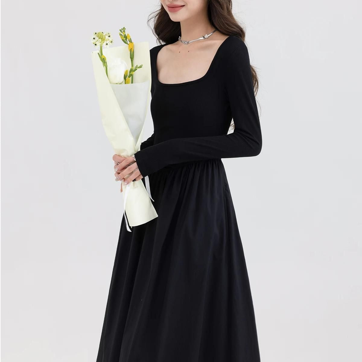 Vestido casual elegante con cuello cuadrado