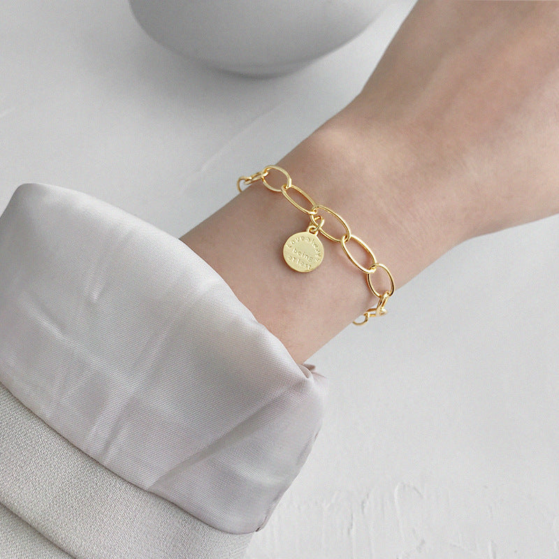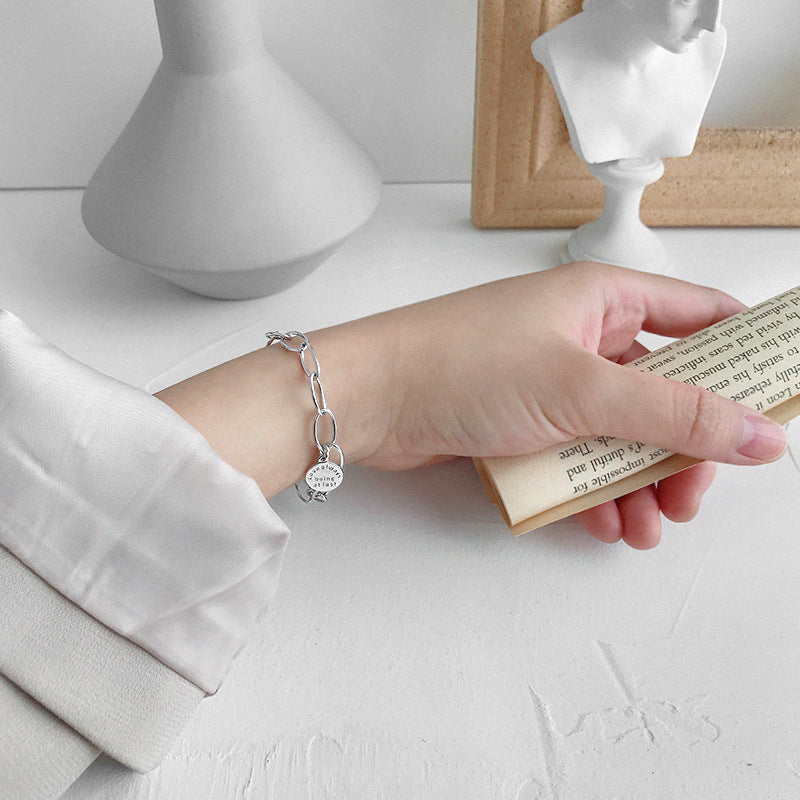 S925 Pulsera de plata esterlina Frigid Wind Geometric English Circle