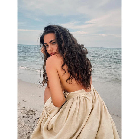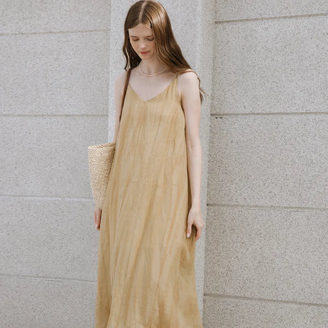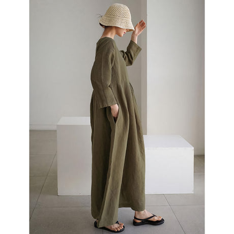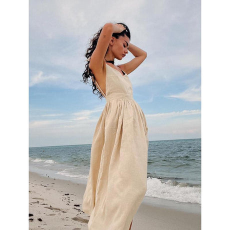 Precio normal HK$647.00Precio unitario /AgotadoVestido de lino con cuello en V