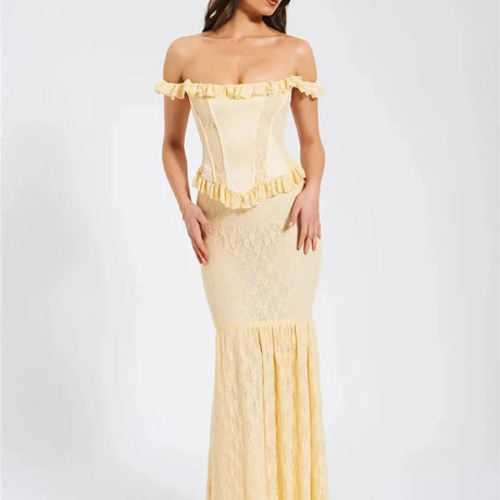 Precio normal HK$592.00Precio unitario /AgotadoVestido largo con corsé de encaje y h...