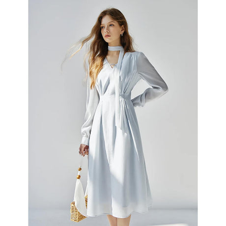 Precio normal HK$1,057.00Precio unitario /AgotadoVestido de cinta azul claro con cuell...