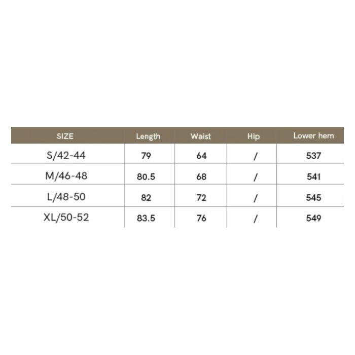 Nuestra falda está meticulosamente confeccionada con una mezcla de nailon y poliéster, lo que ofrece durabilidad y comodidad. La cintura natural y el diseño hasta los tobillos brindan un ajuste favorecedor para todo tipo de cuerpo, lo que garantiza que te veas y te sientas lo mejor posible. El tejido no elástico mantiene la forma de la falda y ofrece una silueta elegante cada vez que la usas.