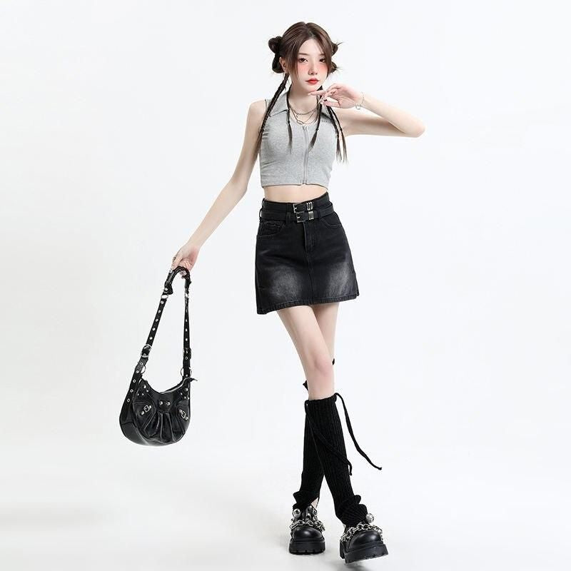 Lo que distingue a esta falda es su combinación única de elementos de moda vintage y contemporáneos. La cintura alta y el largo mini son atemporales, mientras que el tejido denim añade un toque moderno y vanguardista. No es sólo una prenda de vestir; es una declaración de estilo y confianza. La falda también está disponible para venta al por mayor, envío directo y se puede personalizar para satisfacer sus necesidades.