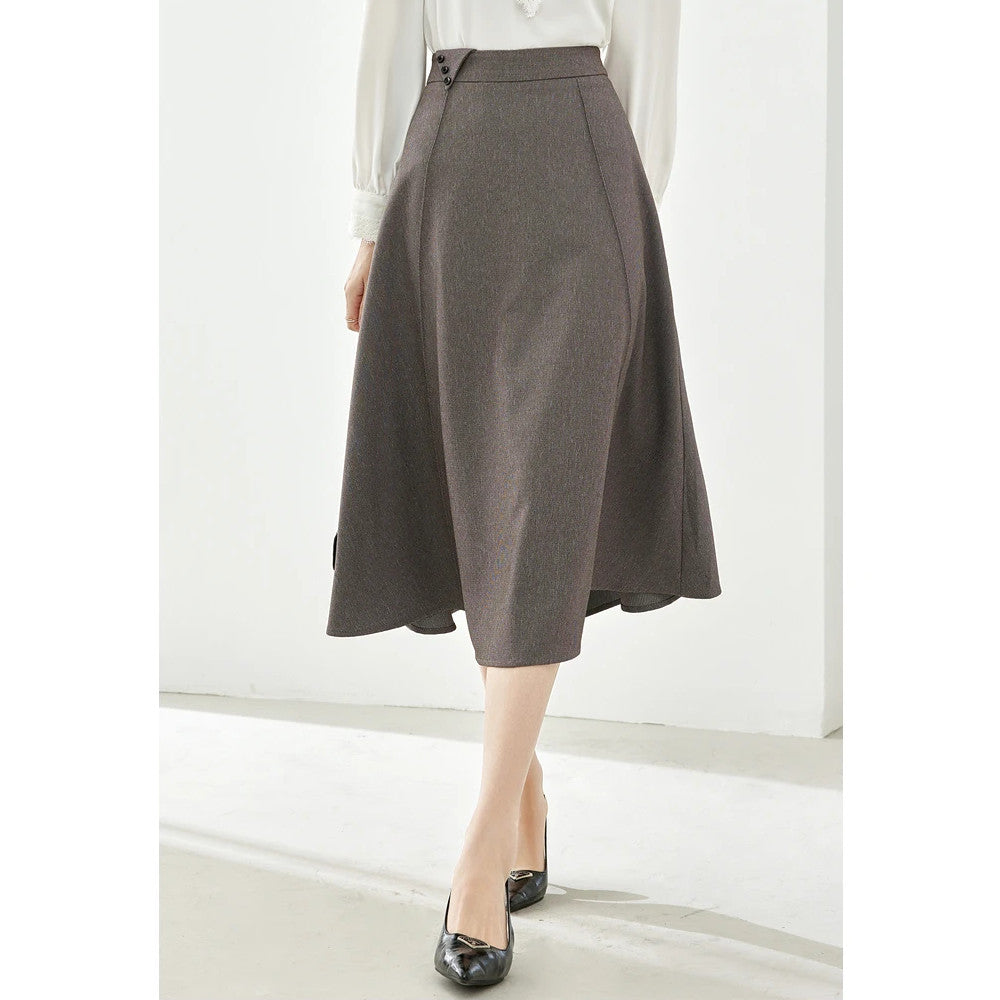 Adéntrate en la elegancia otoñal con la falda midi de cuadros color café