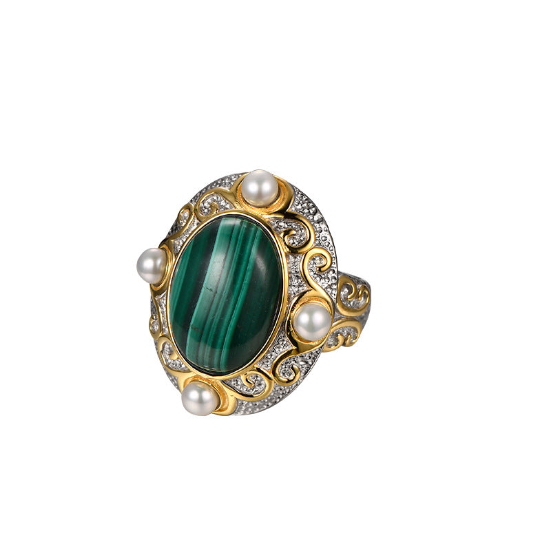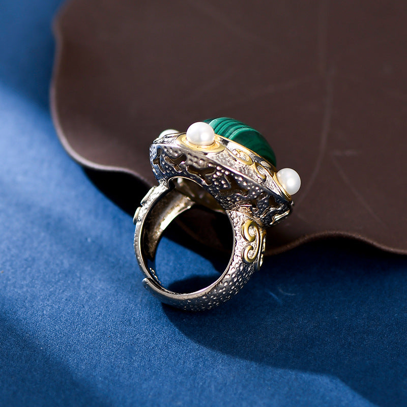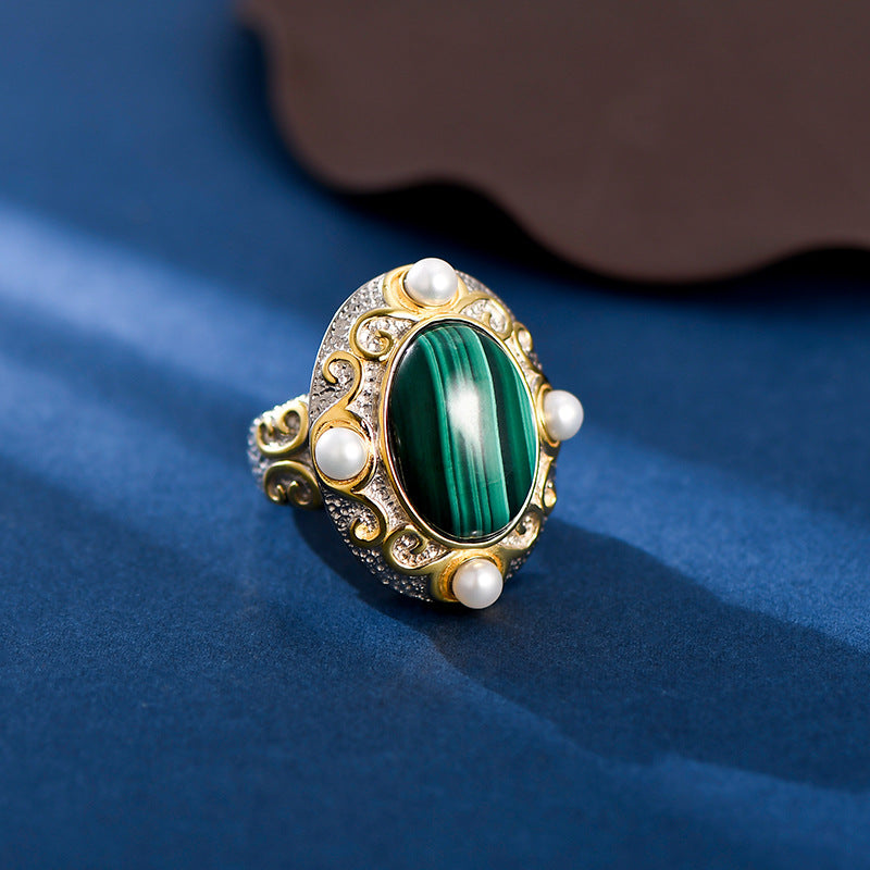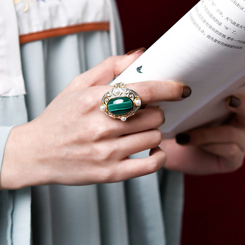 Anillo ovalado de malaquita para mujer