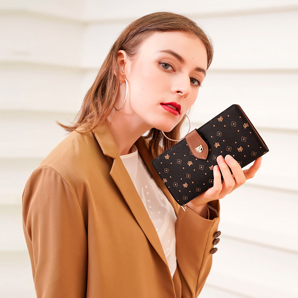 Descubra la combinación perfecta de estilo y practicidad con nuestro elegante tarjetero tipo billetera largo con correa para la muñeca. Esta billetera de hermoso diseño está hecha de cuero de PVC de primera calidad, lo que ofrece durabilidad y un aspecto sofisticado. Ya sea que se dirija al trabajo, a una salida nocturna o a hacer recados, esta billetera es su compañera ideal. Su moderno diseño de monograma y estampados de animales la convierten en un accesorio destacado que complementa cualquier atuendo.