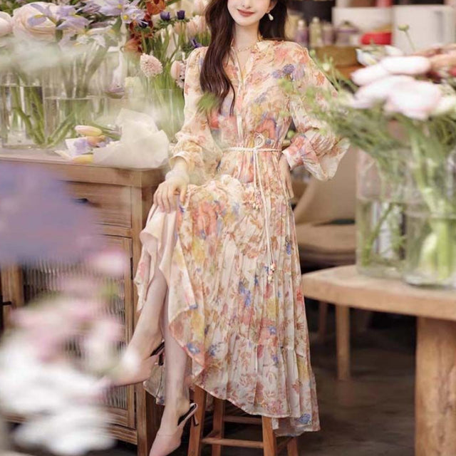 Vestido de cuello alto con estampado floral para mujer, vacaciones en la playa - Color / S está agotado y se enviará tan pronto como vuelva a estar disponible.