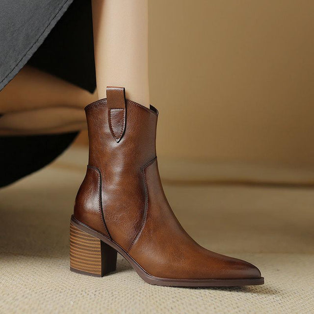 Botas Chelsea de tacón grueso y punta puntiaguda para mujer de otoño