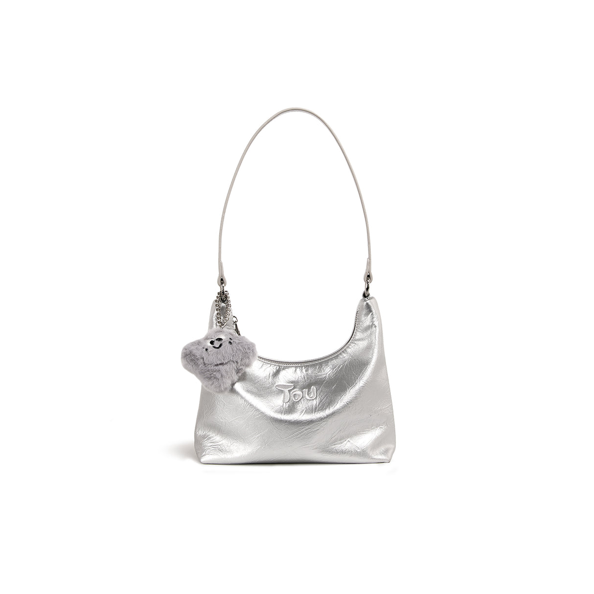 Realza tu estilo con un bolso de hombro de piel sintética plateada de alta gama
