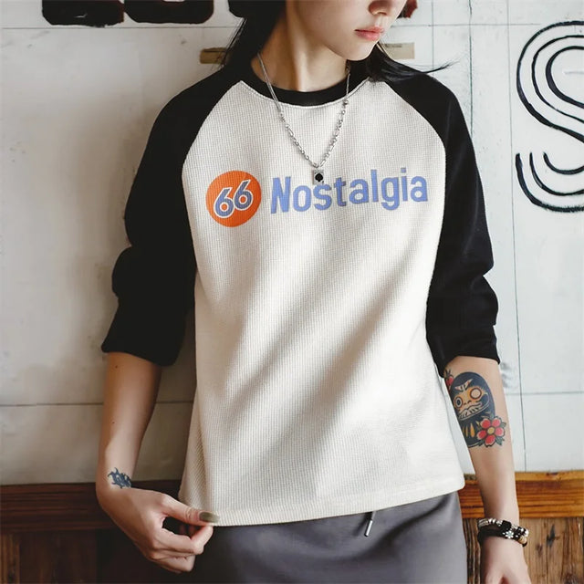 Esta camiseta de manga raglán con contraste retro se destaca por varias razones: