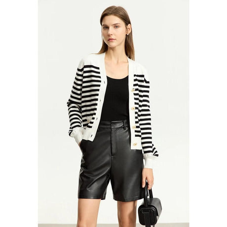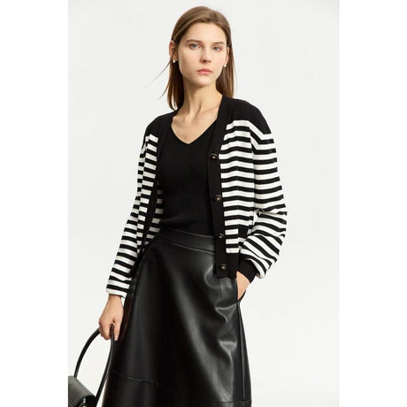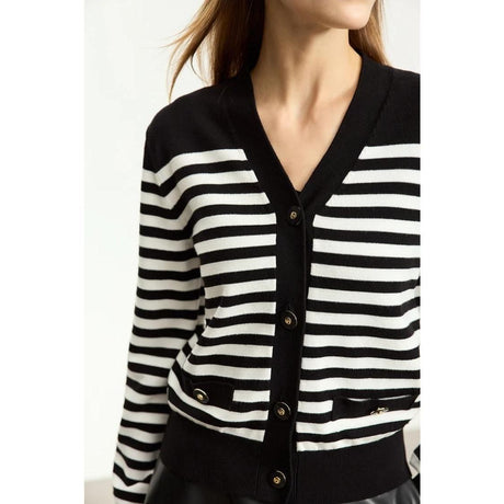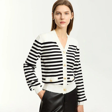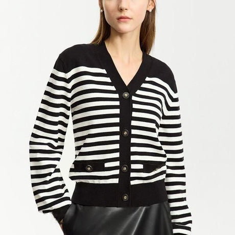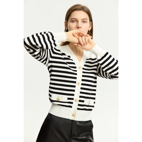 Cárdigan elegante a rayas con cuello ...