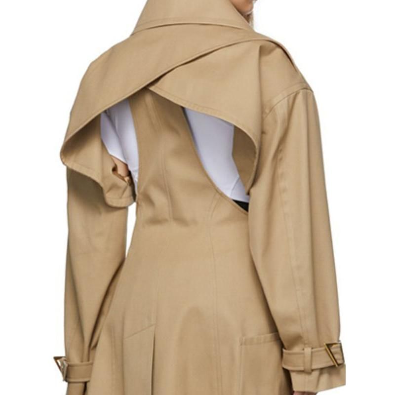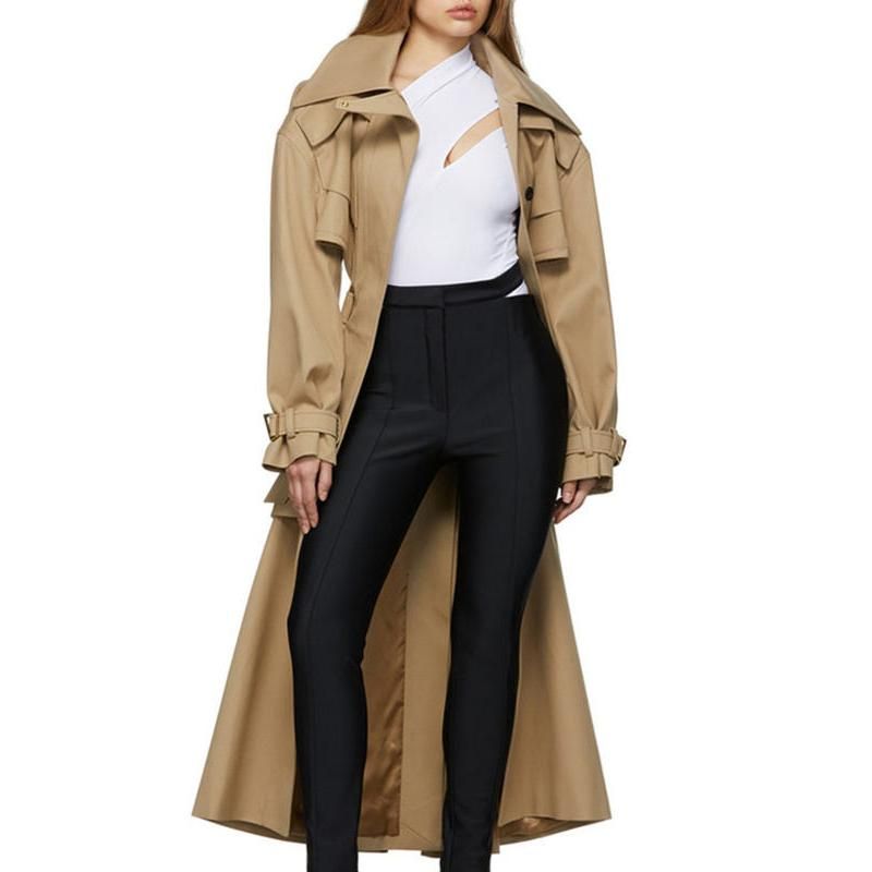 Esta gabardina cuenta con una variedad de características diseñadas para realzar tanto su estilo como su practicidad. El diseño hueco añade un toque moderno a la gabardina clásica, convirtiéndola en una pieza destacada. Sus mangas largas y su largo largo ofrecen una amplia cobertura y protección contra la brisa más fresca del otoño. El patrón sólido del abrigo y el color verde caqui le dan un aspecto atemporal que es fácil de combinar con cualquier conjunto.
