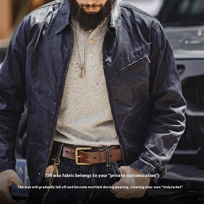Chaqueta de lona con cera al óleo de cuatro generaciones estilo retro americano Amekaji Tough Guy con cremallera corta