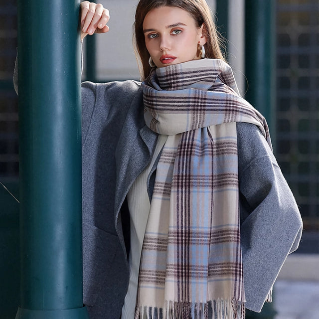 • Diseño atemporal: el patrón de cuadros es una opción clásica que nunca pasa de moda, lo que hace de esta bufanda una adición duradera a su colección.