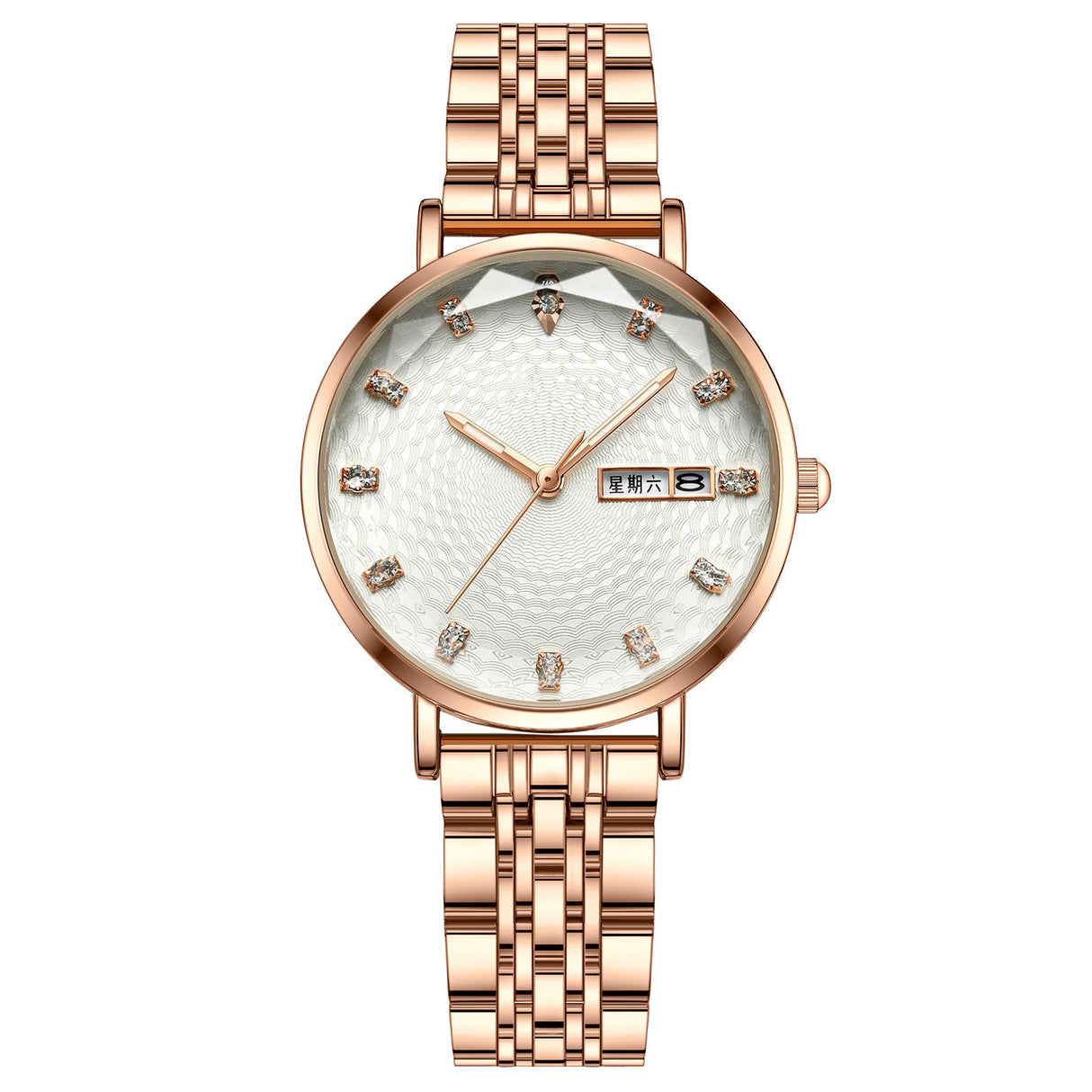 Reloj de mujer con calendario a prueba de agua a la moda - Cara de oro rosa está agotado y se enviará tan pronto como vuelva a estar disponible.