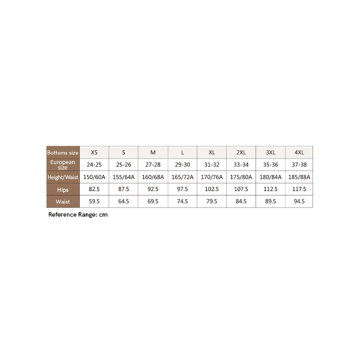 | XS | 0 | 78,7-81,2 | 60,9-63,5 |