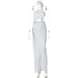 Vestido de moda con escote en forma de tubo, abertura en la espalda y abertura lateral - Blanco / S está agotado y se enviará tan pronto como vuelva a estar disponible.