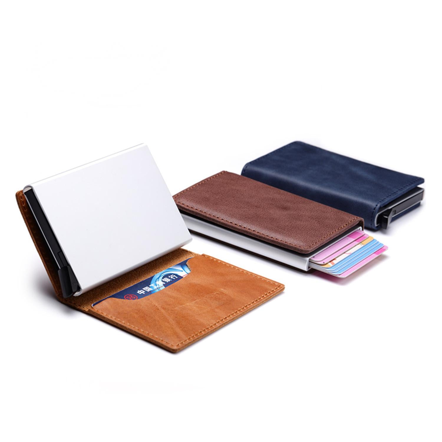 Tarjetero retro de aluminio y cuero Crazy Horse