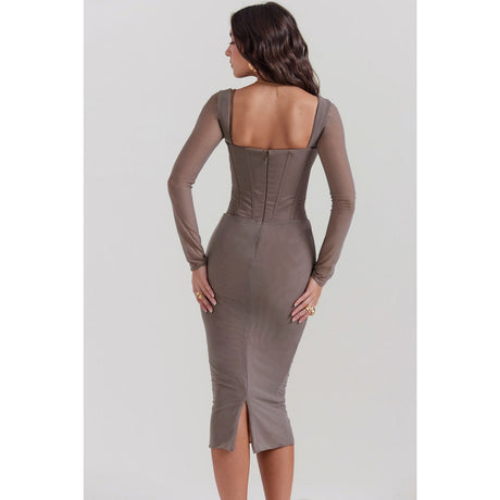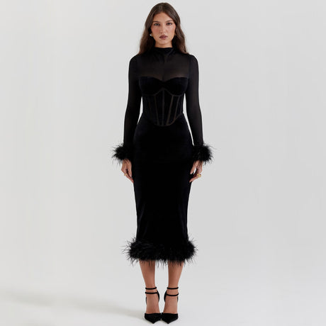 Precio normal ¥25,000 JPYPrecio unitario /AgotadoElegante vestido midi sexy con plumas