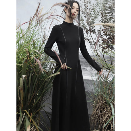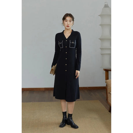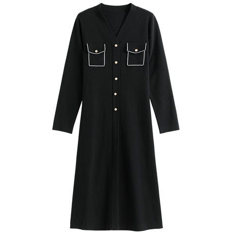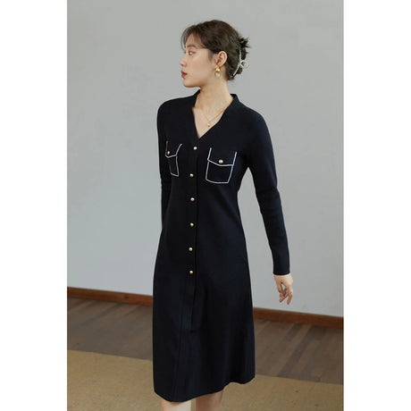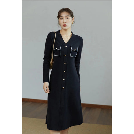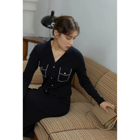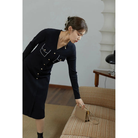 Precio normal ¥21,800 JPYPrecio unitario /AgotadoElegante vestido midi de punto negro ...
