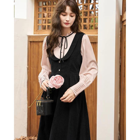 Precio normal ¥21,800 JPYPrecio unitario /AgotadoElegante vestido de terciopelo con bo...