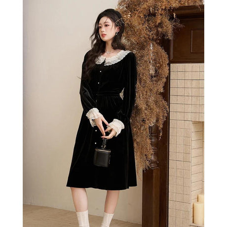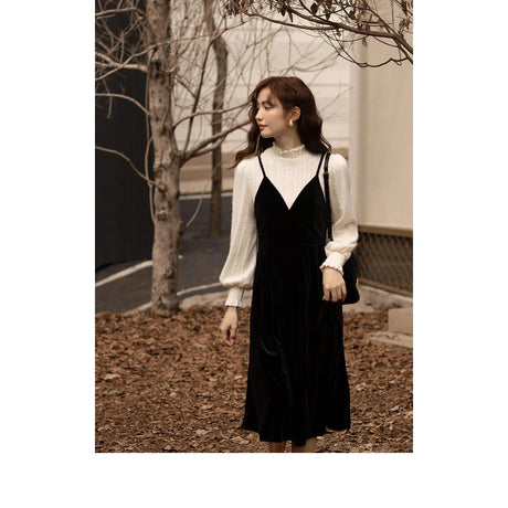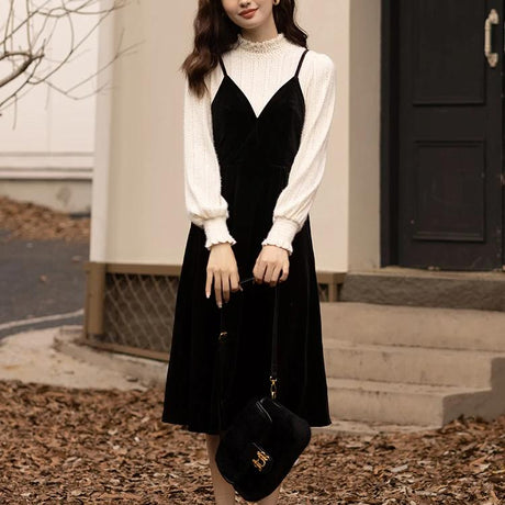 Precio normal ¥9,500 JPYPrecio unitario /AgotadoVestido de fiesta de terciopelo acolc...