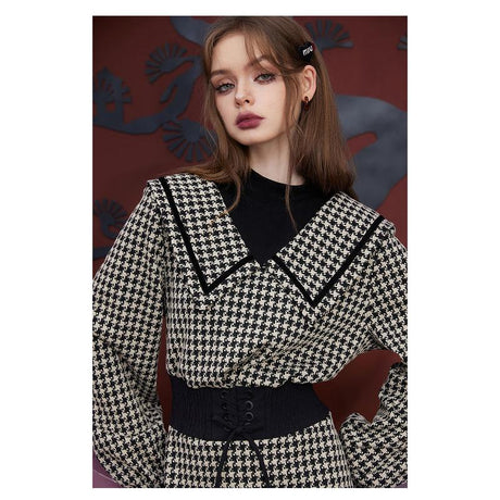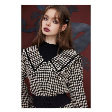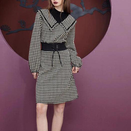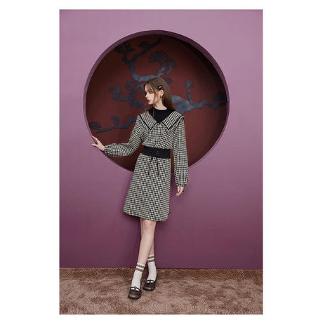 Precio normal ¥27,000 JPYPrecio unitario /AgotadoVestido retro de manga larga a cuadro...