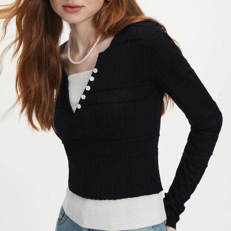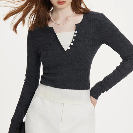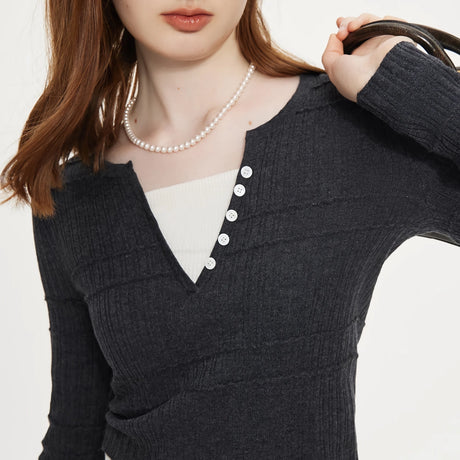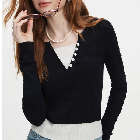 Precio normal ¥12,500 JPYPrecio unitario /AgotadoSuéter de punto con cuello en V y cor...