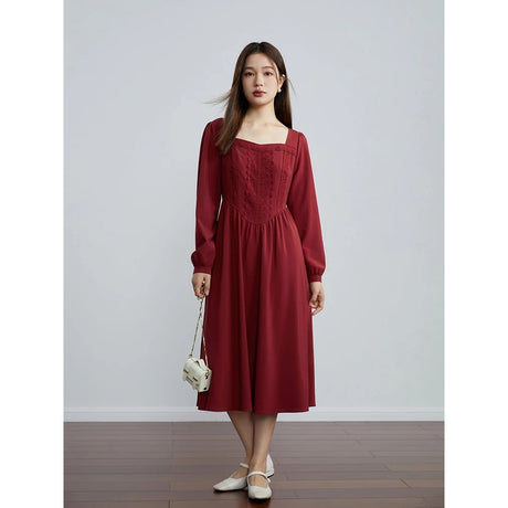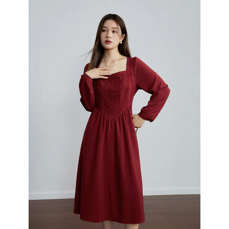 Precio normal ¥23,200 JPYPrecio unitario /AgotadoVestido retro rojo de manga larga con...