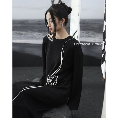 Precio normal ¥30,100 JPYPrecio unitario /AgotadoVestido tipo suéter de punto negro el...