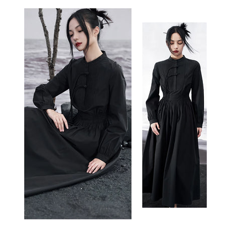 Precio normal ¥32,900 JPYPrecio unitario /AgotadoElegante vestido camisero negro de co...