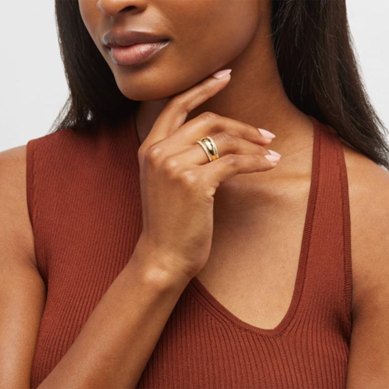 • Diseño clásico: el estilo suave y minimalista de este anillo se realza con su baño de oro de 18k y sus brillantes diamantes de imitación, que ofrecen un toque de glamour sin abrumar tu look.