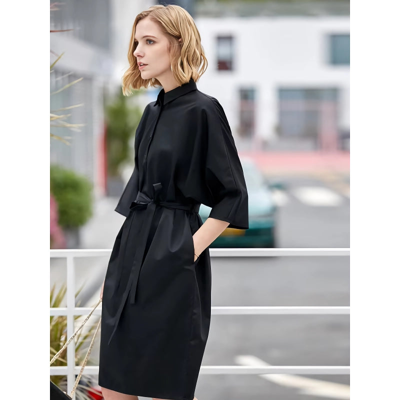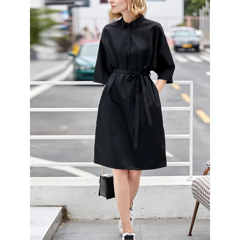 Elegante vestido camisero de corte A con cinturón