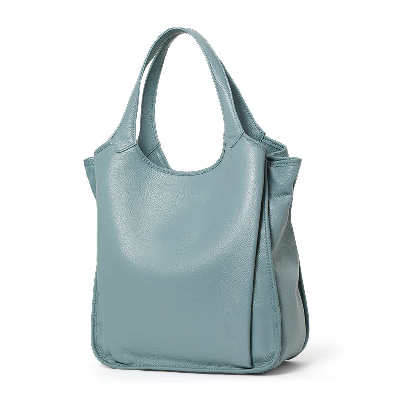 Bolso de mano de gran capacidad de piel auténtica: bolso de hombro minimalista de piel de vaca - Azul está agotado y se enviará tan pronto como vuelva a estar disponible.