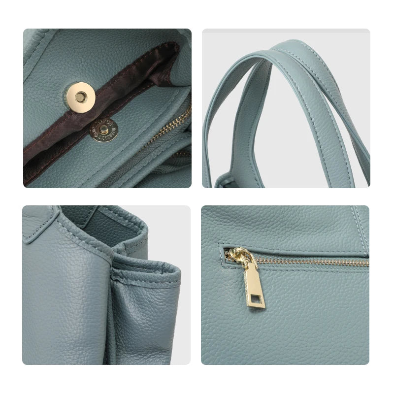 Este bolso tote de piel auténtica destaca por su diseño minimalista pero a la vez moderno, perfecto para mujeres que quieren lucir elegantes sin comprometer la practicidad. Fabricado con piel de vacuno de primera calidad, no solo ofrece una sensación de lujo, sino también un transporte suave y cómodo que se adapta a tu estilo de vida. Su gran capacidad lo hace ideal para quienes necesitan un bolso versátil que pueda contener tanto artículos esenciales de trabajo como artículos personales sin sacrificar el estilo. Además, sin adornos excesivos, este bolso mantiene tu apariencia limpia, con clase y elegante sin esfuerzo.Llévalo a donde quiera que vayas