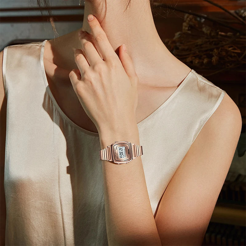 Descubra la combinación perfecta de elegancia y tecnología moderna con el reloj digital Luxury Gold. Este reloj de pulsera de acero inoxidable está diseñado para marcar tendencia, ya sea que se esté vistiendo elegante para una ocasión importante o simplemente quiera agregar un toque de sofisticación a su estilo diario. Su llamativo acabado dorado y su elegante caja cuadrada lo convierten en el accesorio definitivo tanto para hombres como para mujeres que valoran el estilo y la funcionalidad. Este reloj no solo se destaca por su apariencia; está repleto de características que lo convierten en una pieza esencial para tu muñeca. Con una pantalla digital y una función de calendario completa, siempre estarás al tanto de tu agenda. El reloj es resistente al agua hasta 3 bares, lo que lo hace perfecto para el uso diario, ya sea que te sorprenda la lluvia o te laves las manos. La duradera correa de acero inoxidable ofrece comodidad, mientras que las funciones de resistencia a los golpes y cronómetro garantizan que pueda seguir el ritmo de tu estilo de vida activo.Características principales del reloj digital dorado de lujo