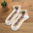 Calcetines tobilleros retro con estampado floral y perlas de Lolita