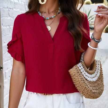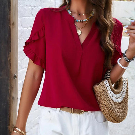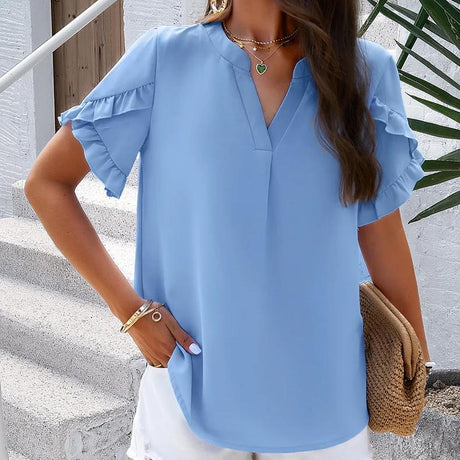 Precio normal $ 2,529.00 MXNPrecio unitario /AgotadoBlusa informal con escote en V y vola...