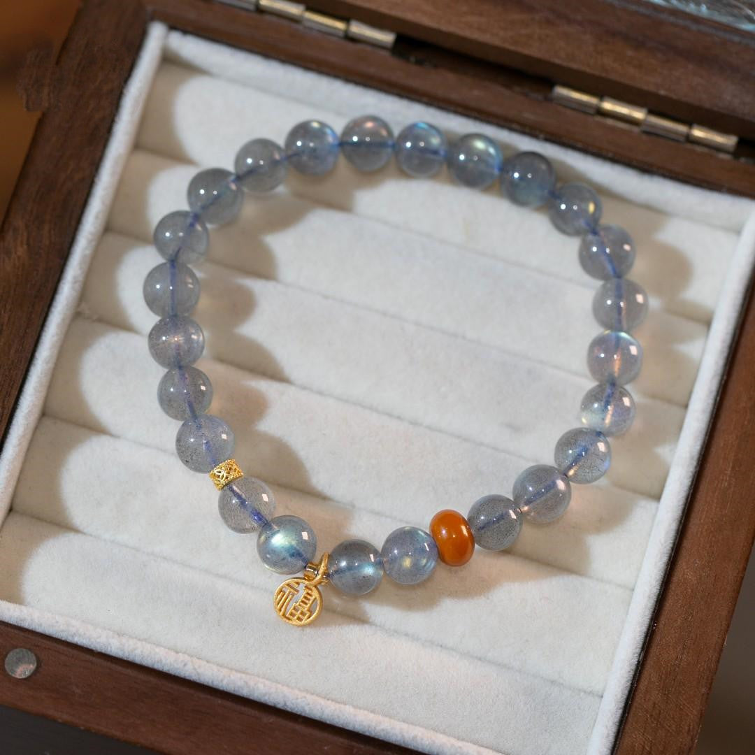 Hebra de feldespato natural de un solo anillo con colgante de la fortuna - Azul está agotado y se enviará tan pronto como vuelva a estar disponible.