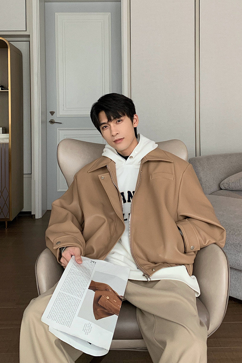 Chaqueta retro de invierno de cuero de PU casual de moda corta y guapa