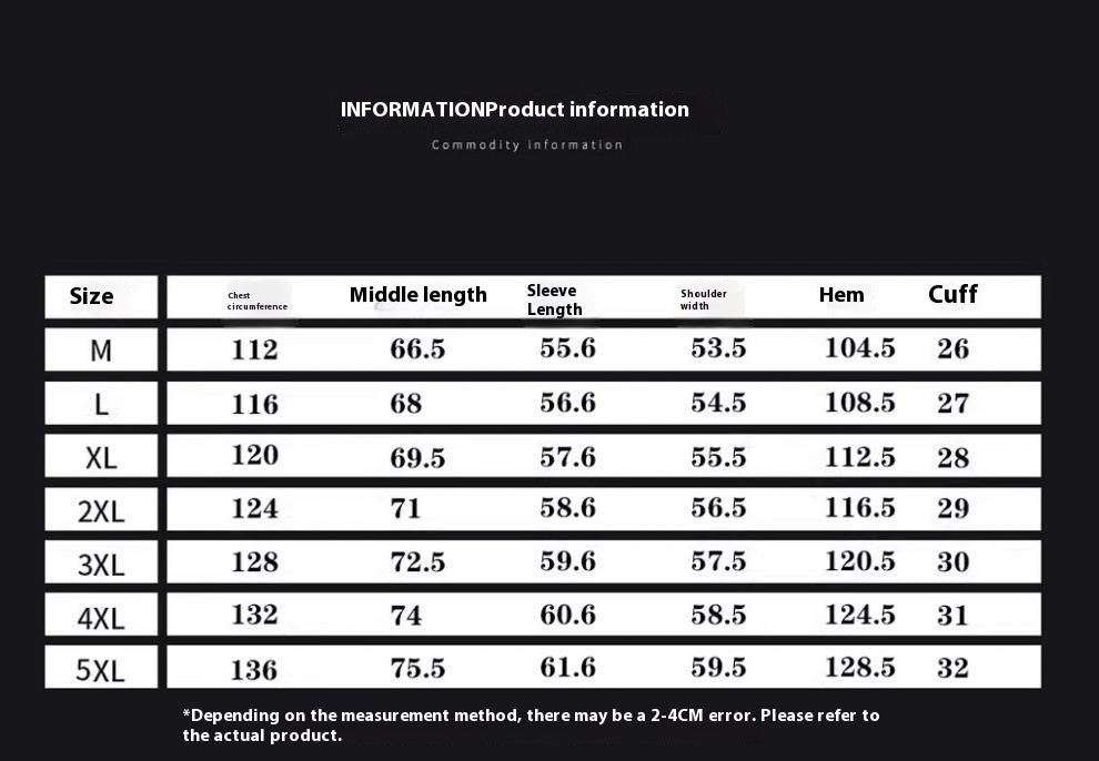 Tamaño: M, L, XL, 2XL, 3XL, 4XL, 5XL