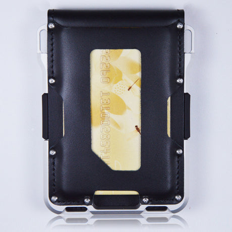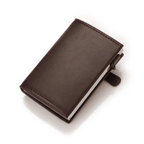 Tarjetero retro de aluminio y cuero C...