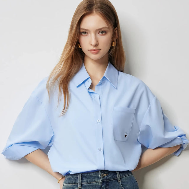 Ya sea que vayas a la oficina, asistas a un brunch informal o disfrutes de una salida nocturna, esta blusa es tu compañera perfecta. El diseño con vuelta en la espalda le da un toque único a la clásica camisa de manga larga, lo que la convierte en una prenda destacada en tu guardarropa. El ajuste holgado y la tela que no se estira garantizan comodidad sin comprometer el estilo.Por qué te encantará