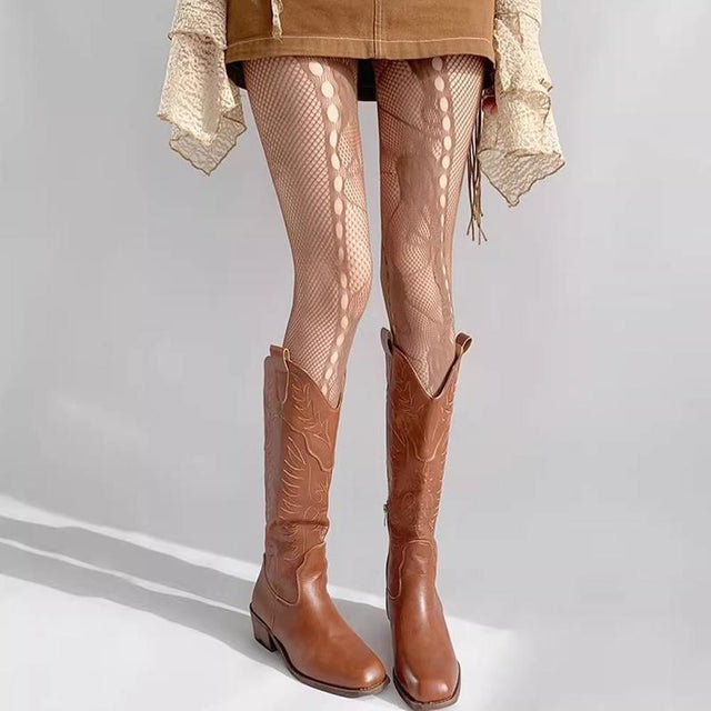 Nuestras elegantes medias de rejilla con encaje de malla Rose están hechas de nailon de alta calidad y ofrecen una textura suave y sedosa que se siente increíble contra tu piel. El material delgado pero duradero garantiza un ajuste perfecto, abrazando tus curvas en los lugares correctos sin sentirse restrictiva. El patrón floral es romántico y atrevido a la vez, brindándote lo mejor de ambos mundos. Con su diseño de malla redonda y detalles huecos, estas medias no solo están de moda sino que también son funcionales, permitiendo que tu piel respire mientras brinda la cantidad justa de cobertura.