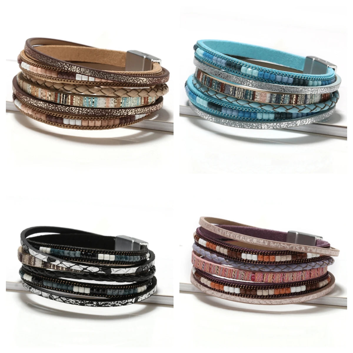 Pulsera de cuero bohemio tejida a mano con hebilla magnética
