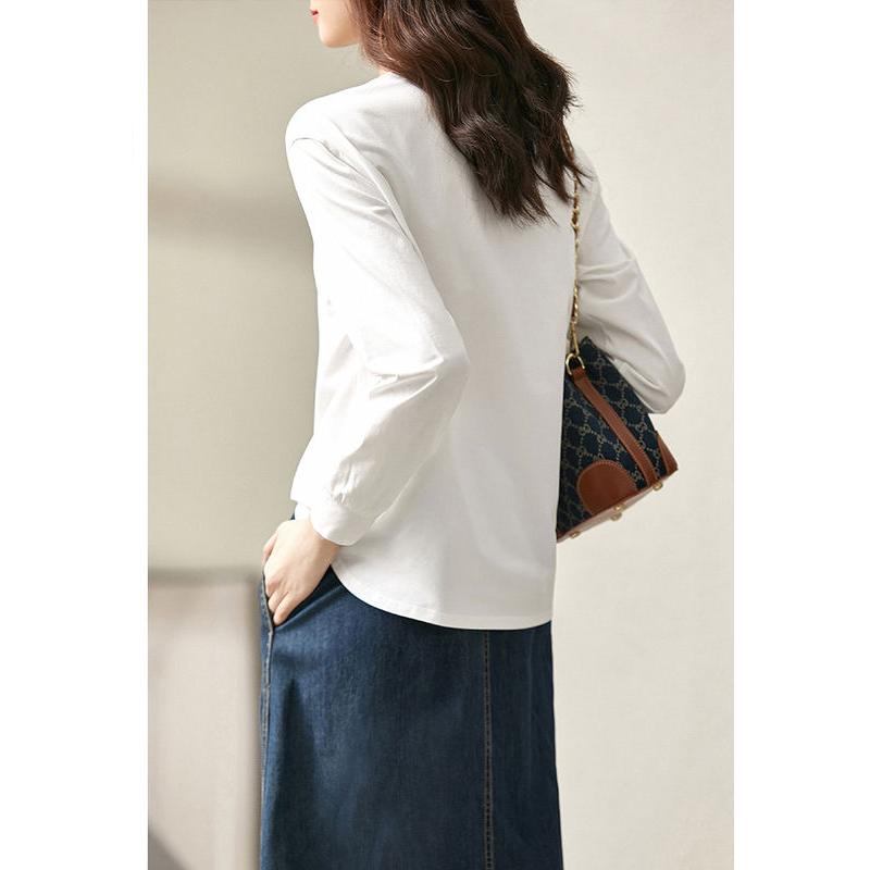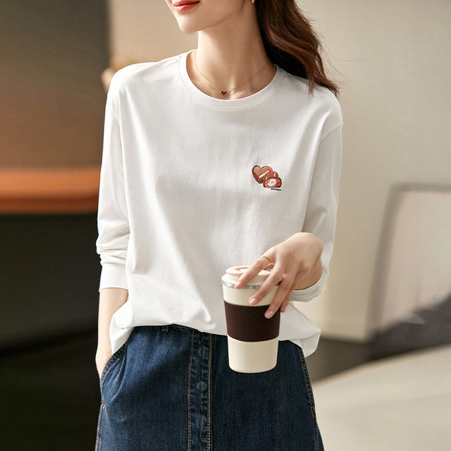 Ya sea primavera, otoño o cualquier estación intermedia, esta camiseta de manga larga es una incorporación versátil a tu guardarropa. Su tela transpirable te mantiene fresca durante los meses más cálidos, mientras que las mangas largas ofrecen una cobertura adicional en los días más fríos. Combínala con jeans, pantalones cortos o faldas para lograr un estilo informal pero elegante que se adapta sin esfuerzo del día a la noche.