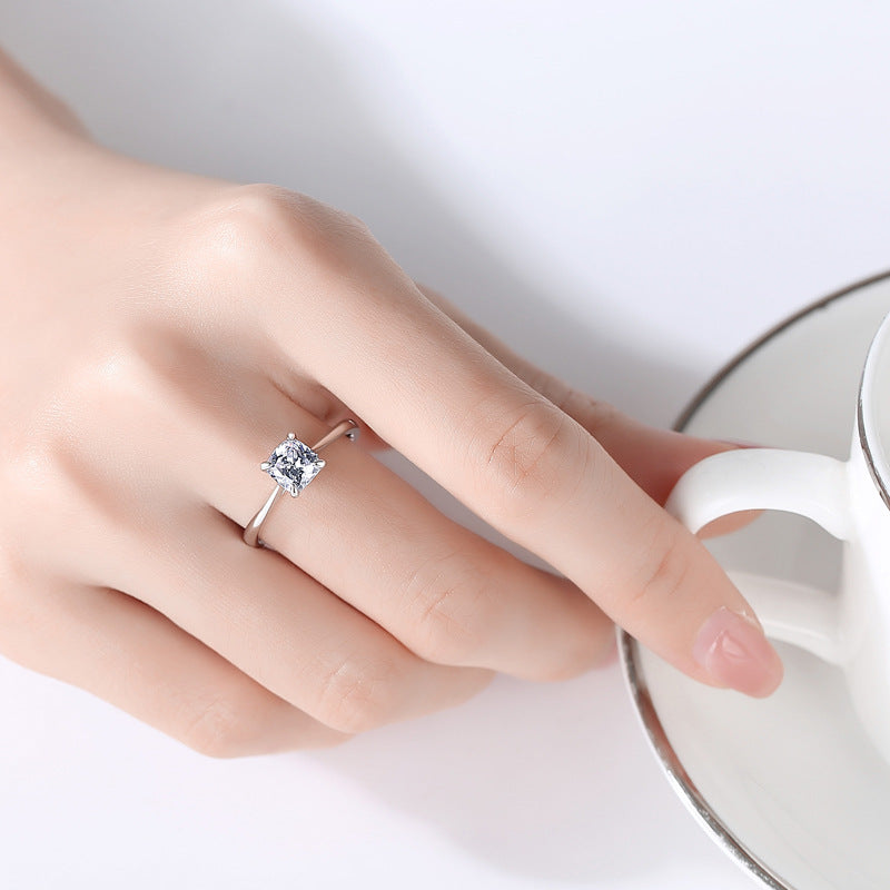 Anillo de diamante cuadrado gordo de plata esterlina S925