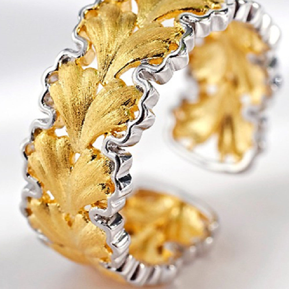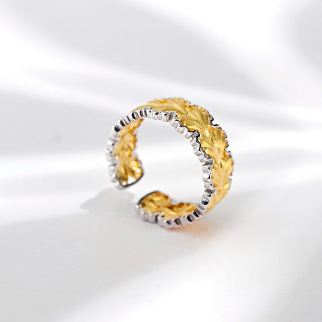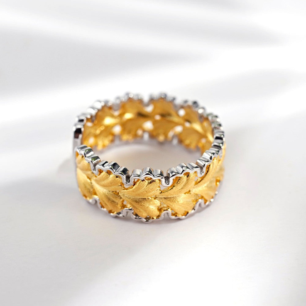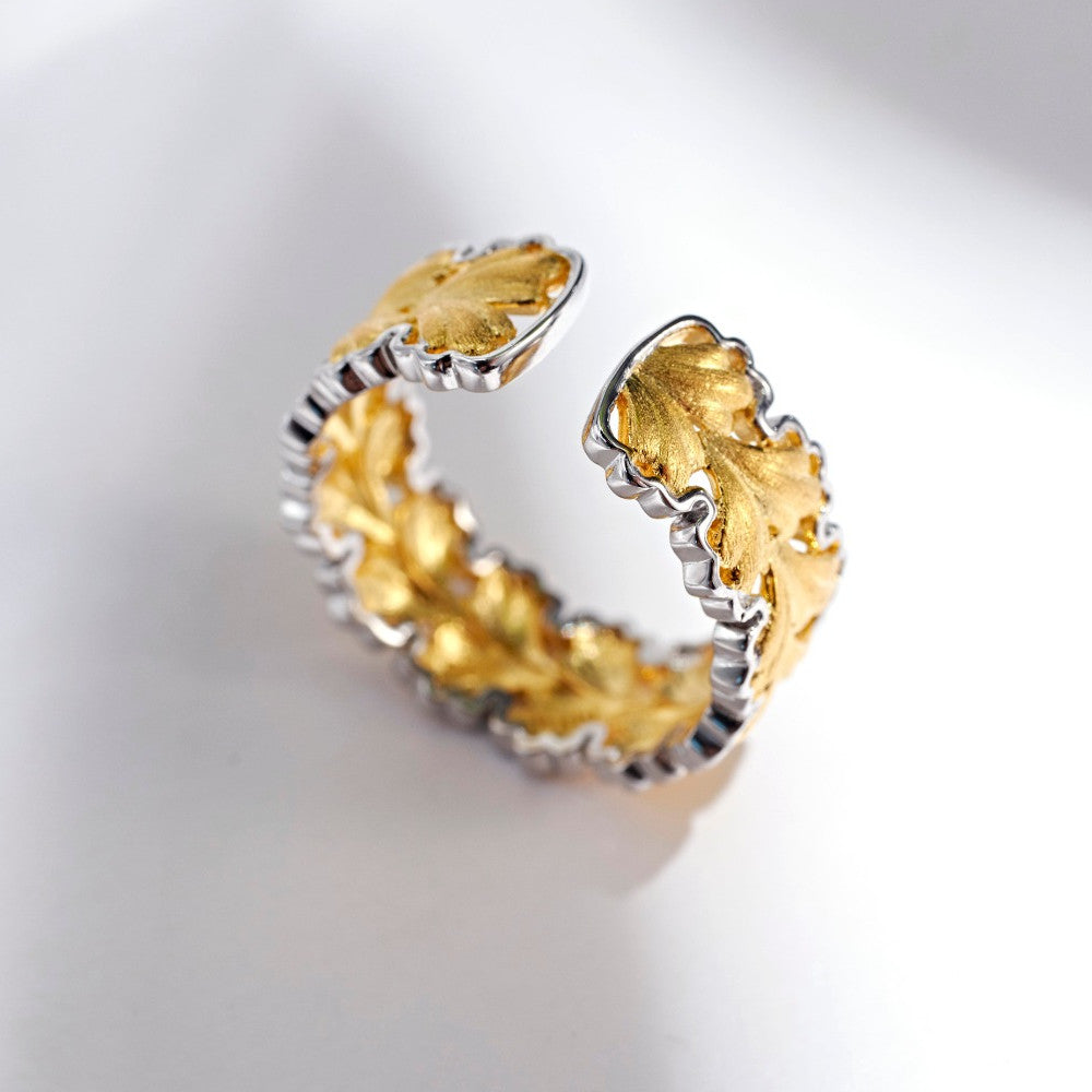 Anillo de mujer con hoja de ginkgo chapada en oro